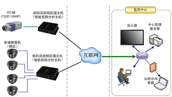 隨著監(jiān)控技術的快速發(fā)展,高清視頻監(jiān)控已經(jīng)逐步成為了主流的應用方向,D1(704*576像素),720P,1080P等分辨率的監(jiān)控系統(tǒng),隨著設備成本的下降,已經(jīng)被許多用戶接受并使用,高清晰的視頻畫面能讓用戶對畫面中的細節(jié)看得更清楚,同時還能的獲得更大視角范圍。但是高清視頻監(jiān)控系統(tǒng)隨之也產生了另一個問題——雖然高清的視頻監(jiān)控系統(tǒng)均采用了H.264的編碼方式,但還是產生了較大的視頻碼流,由此對于視頻傳輸所需的帶寬要求非常高,這使得網(wǎng)絡傳輸?shù)慕ㄔO成本大幅增加,同時也使得高清視頻監(jiān)控系統(tǒng)的適用范圍受到了限制。