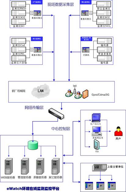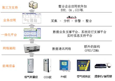 eWatch環(huán)境在線監(jiān)控監(jiān)測應(yīng)用平臺實現(xiàn)監(jiān)控和生產(chǎn)相結(jié)合的綜合性應(yīng)用平臺。平臺由數(shù)據(jù)中心、一體化應(yīng)用平臺、綜合監(jiān)控基礎(chǔ)平臺、業(yè)務(wù)應(yīng)用系統(tǒng)和接口服務(wù)模塊等組成,在綜合監(jiān)控基礎(chǔ)平臺上開發(fā)圖像監(jiān)控系統(tǒng)、環(huán)境動力監(jiān)控系統(tǒng)和數(shù)采系統(tǒng)等多個業(yè)務(wù)應(yīng)用系統(tǒng);系統(tǒng)可以實現(xiàn)污染源在線監(jiān)測監(jiān)控、鋼廠區(qū)域視頻監(jiān)控、煙塵林格曼黑度分析、環(huán)境動力監(jiān)控、語音對講、周界安防監(jiān)控、智能設(shè)備監(jiān)測等多個應(yīng)用。