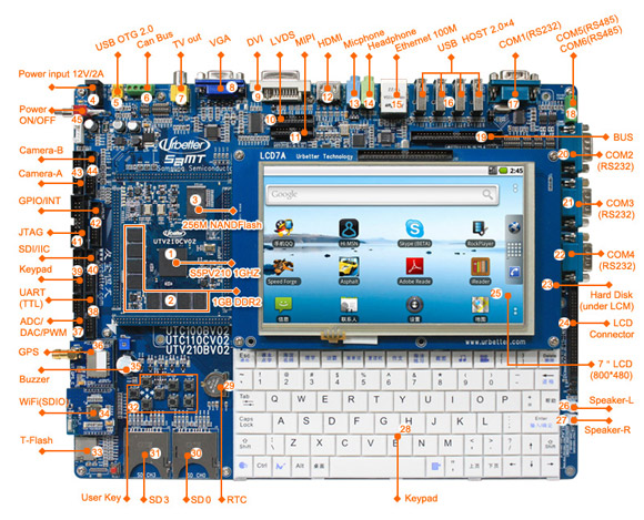 高速OTG 2.0(Device),支持與PC進(jìn)行同步、拷貝數(shù)據(jù),支持連接VS2005進(jìn)行引用程序單步調(diào)試