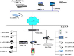 (2) 監(jiān)控中心由eWatch WEB/數(shù)據(jù)庫/錄像服務(wù)器及監(jiān)控主機(jī)、短消息服務(wù)器等組成。