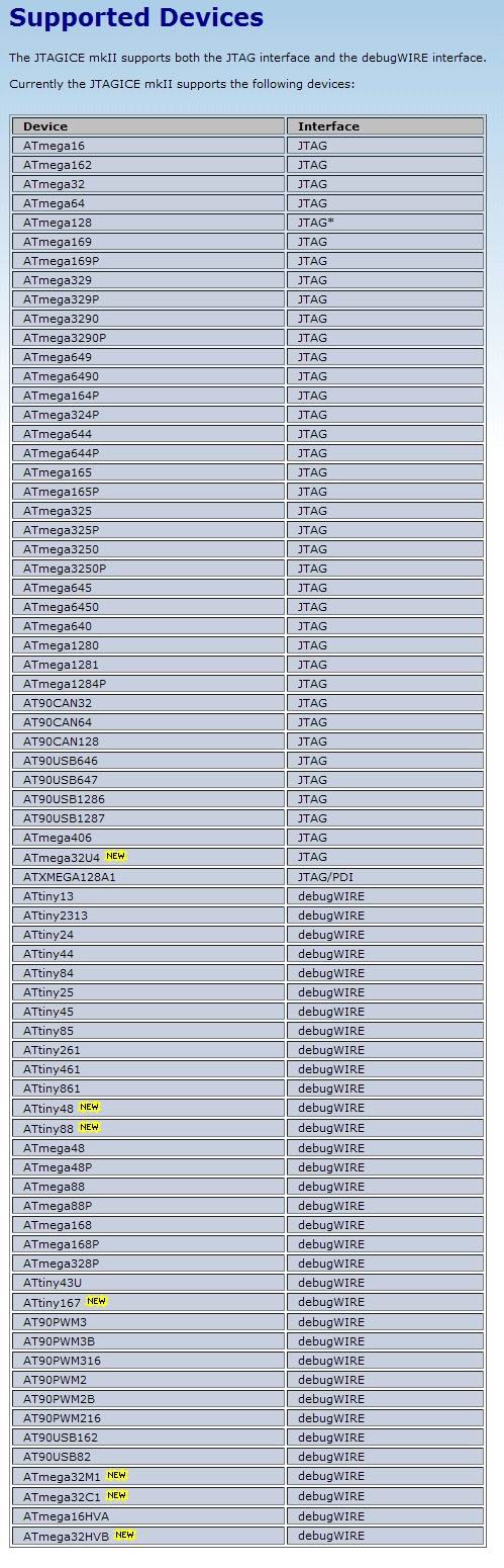 support program AVR devices with JTAG & debugWIRE
