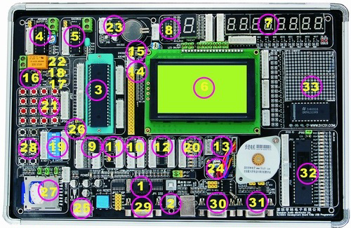 整機(jī)由以下數(shù)十個(gè)模塊組成,功能強(qiáng)勁令人嘆為觀止!集成了基本上所有單片機(jī)應(yīng)用中可能遇到的功能模塊部份,你再也不必要去找其他零件,即可輕松完成您所需要的開發(fā)任務(wù)。我敢打賭這是你目前見(jiàn)到的功能強(qiáng)的51開發(fā)板(其中12864液晶率先成為系統(tǒng)的標(biāo)準(zhǔn)配置。僅此價(jià)格即超過(guò)百元!同時(shí)率先引入sd卡,485通信,can總線,漢字屏等等高端模塊,不象其他板子僅僅只能作幾個(gè)跑馬燈,數(shù)碼管實(shí)驗(yàn))