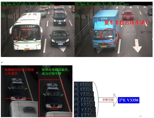 ★機(jī)動(dòng)車(chē)道的車(chē)輛檢測(cè)識(shí)別,對(duì)于機(jī)動(dòng)車(chē)道,前端檢測(cè)抓拍系統(tǒng)采用純視頻抓拍技術(shù)或者線(xiàn)圈車(chē)輛檢測(cè)器,在智能高清相機(jī)內(nèi)的DSP處理單元中,完成對(duì)經(jīng)過(guò)車(chē)輛的視頻檢測(cè)和車(chē)牌抓拍,將抓拍的圖片和視頻片段等相關(guān)的信息(時(shí)間、地點(diǎn)、車(chē)輛速度、行駛方向、車(chē)牌圖片等)